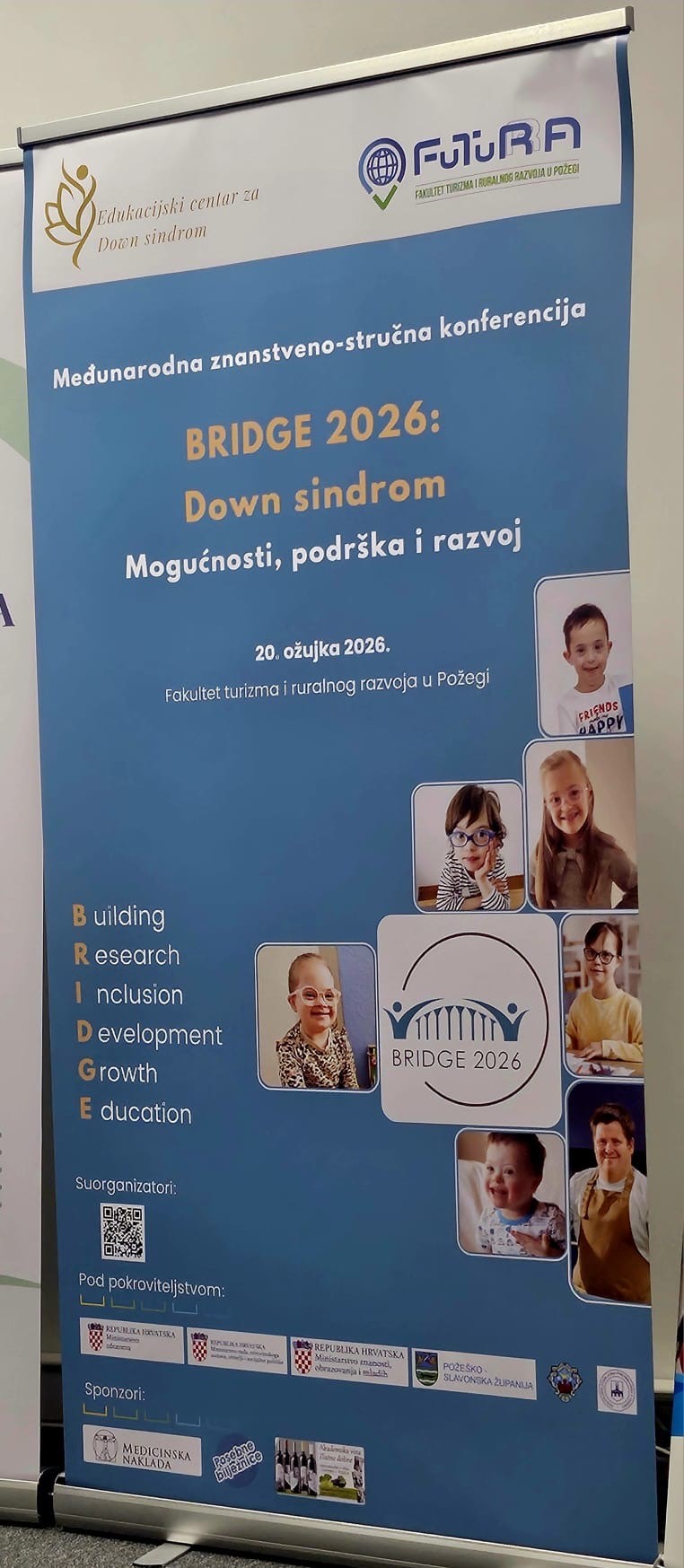 U sklopu obilježavanja Svjetskog dana osoba s Down sindromom, edukacijska rehabilitatorica naše ustanove Dina Dežmar sudjelovala je 20. ožujka na međunarodnoj znanstveno-stručnoj konferenciji BRIDGE 2026: Down sindrom – mogućnosti, podrška i razvoj u Požegi.